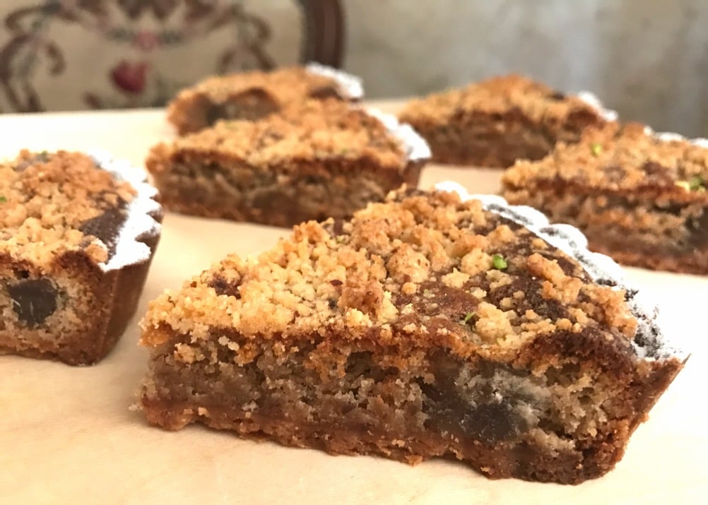 フランス産マロンのペーストをたっぷり練り込んだクリームの上にマロングラッセ、アーモンド風味のクランブル(シュトロイゼル)をたっぷり乗せて焼き上げ、色鮮やかなピスタチオを飾って仕上げるレドゥーシャのスペシャリテ。
