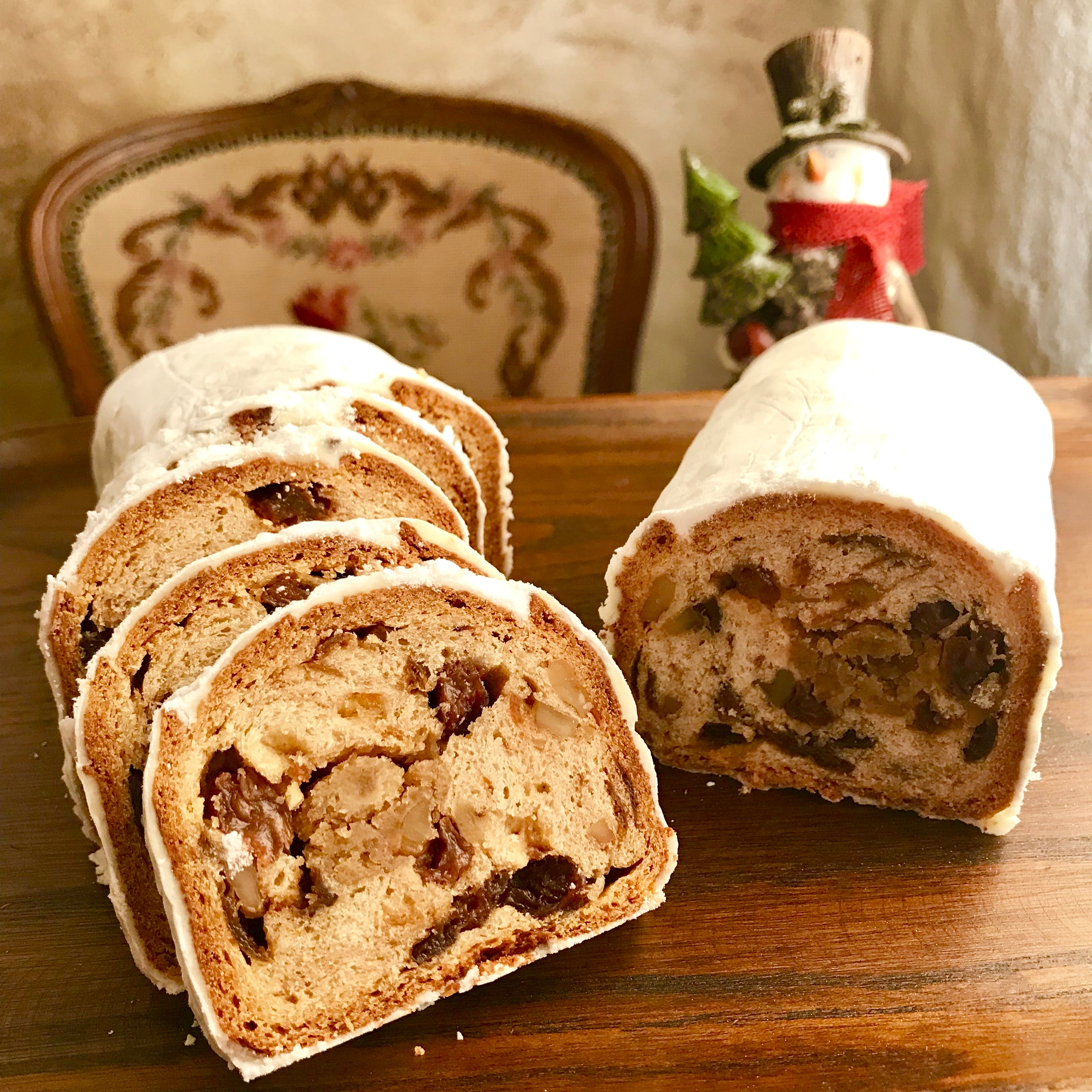 キリスト教における「アドヴェント」(=アドベント、イエス・キリストがベツレヘムの牛小屋で生誕したとされる12月25日までの約4週間)に、クリスマスを待ち望みながら少しずつ食べるという伝統のある、ドイツ発祥のドライフルーツ入りのパンの一種です。